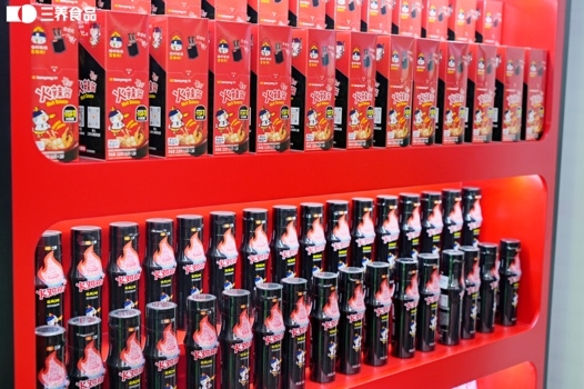 在打造核心爆款的同时,三养食品围绕火鸡风味进行多元化拓展,提出“Swicy”(Sweet + Spicy)概念,打造“火鸡宇宙”。今年3月,三养食品对旗下火鸡辣酱进行升级,从工艺、包装、玩法等多方面创新,紧密贴合市场反馈。先进冷却工艺确保产品品质稳定,3D包装设计贴合手部线条,镂空设计让消费者直观看到产品余量,包装上添加的“三养火鸡宇宙”社群二维码,增强了消费者与品牌的互动。